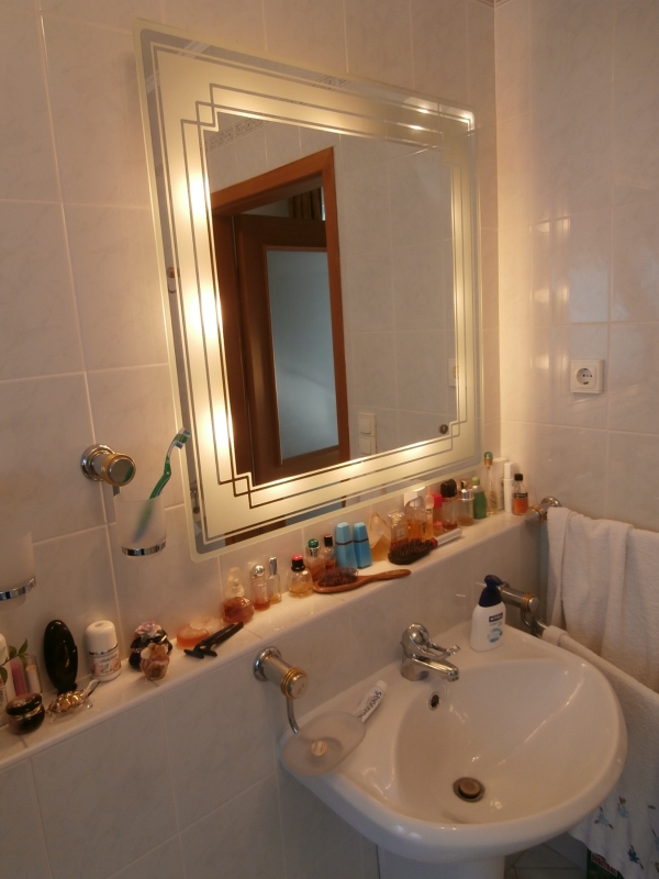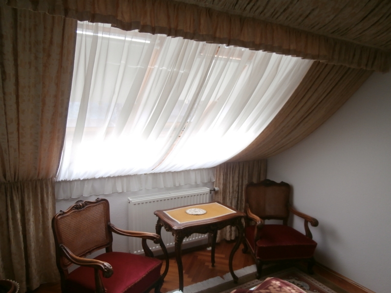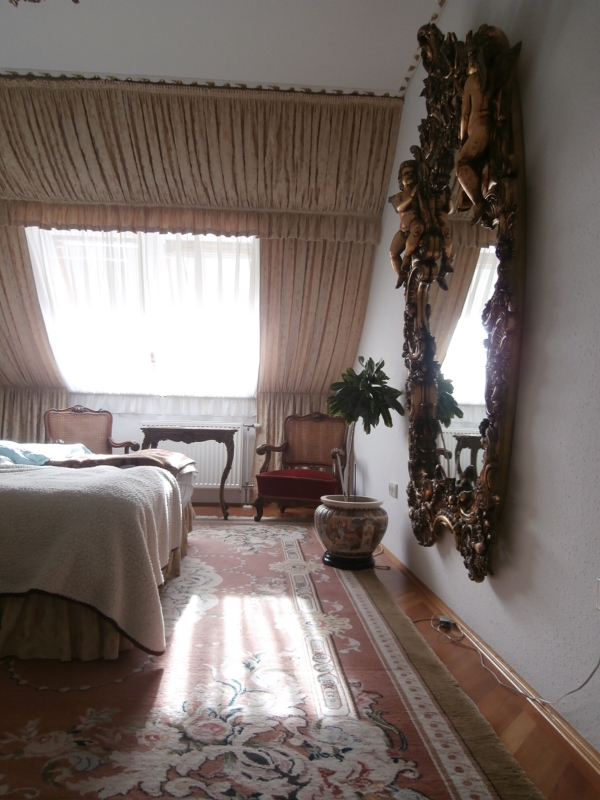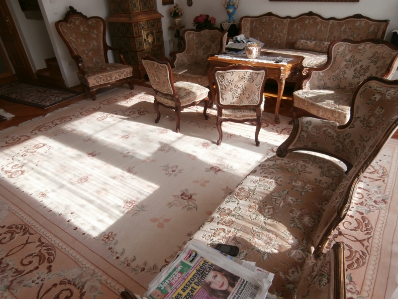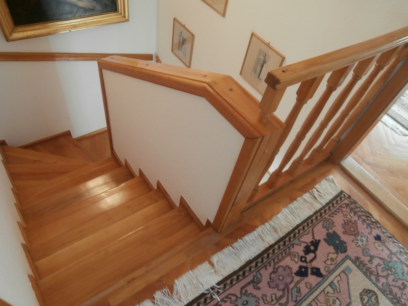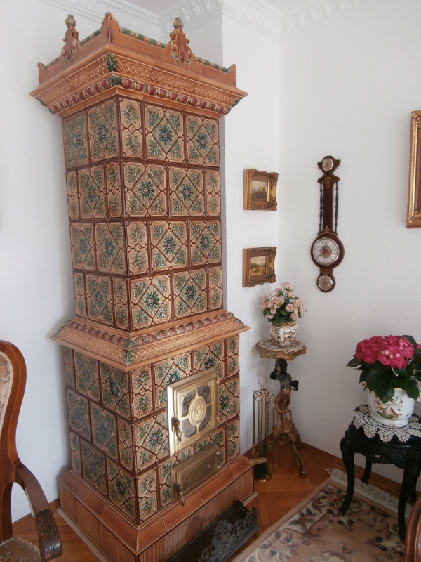 Az emeleti szinten egy egy központi térből nyíló önálló fürdőszoba és három hálószoba, illetve erkély is található, részben klimatizálva. A lakás új és gazdaságos cirkó gázfűtéssel rendelkezik, ezen kívül a földszinti nagy nappaliban egy szilárd tüzelésű, nagyon szép Zsolnay kerámia cserépkályha biztosít külön önálló vagy kiegészítő fűtési lehetőséget.