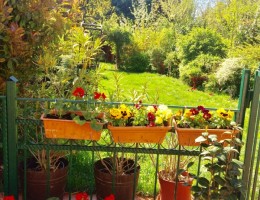 A 710 m2 kert intim, örökzöldekkel, lombhullatókkal beültetett, gondozott, ápolt, nagyméretű, tárolásra alkalmas faházzal.
